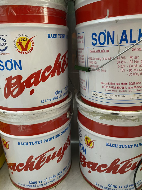 - Để pha loãng sơn có thể dùng dung môi xylene, toluene hoặc xăng. Sơn dầu đen mờ Bạch Tuyết có các thùng 16kg, lon 0.4Kg, 0.2kg, 0.8kg, 3kg.
