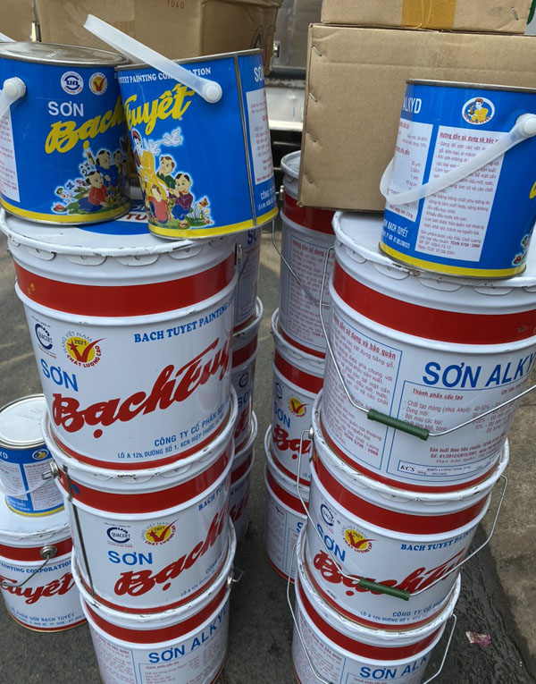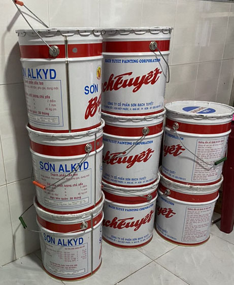 - Để pha loãng sơn có thể dùng dung môi xylene, toluene hoặc xăng. Sơn dầu alkyd đen mờ Bạch Tuyết có các lon 3kg, 0.4Kg, 0.2kg, 0.8kg và thùng 16kg.