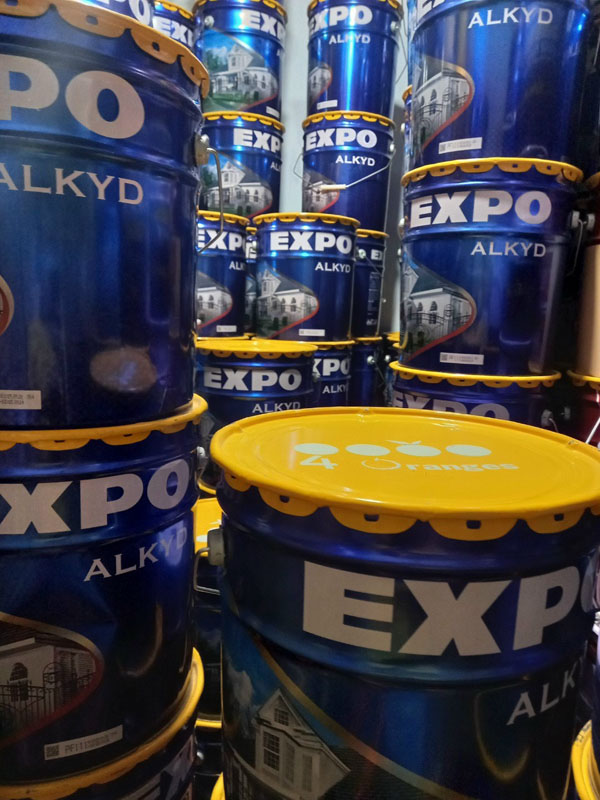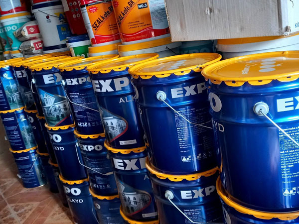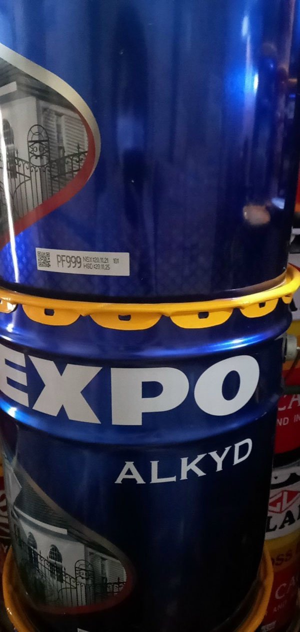 - Để pha loãng sơn có thể dùng dung môi xylene, toluene hoặc dầu hỏa. Sơn alkyd EXPO có các lon 150ml, 375ml, 800ml, 3 lít và thùng 17.75 lít.