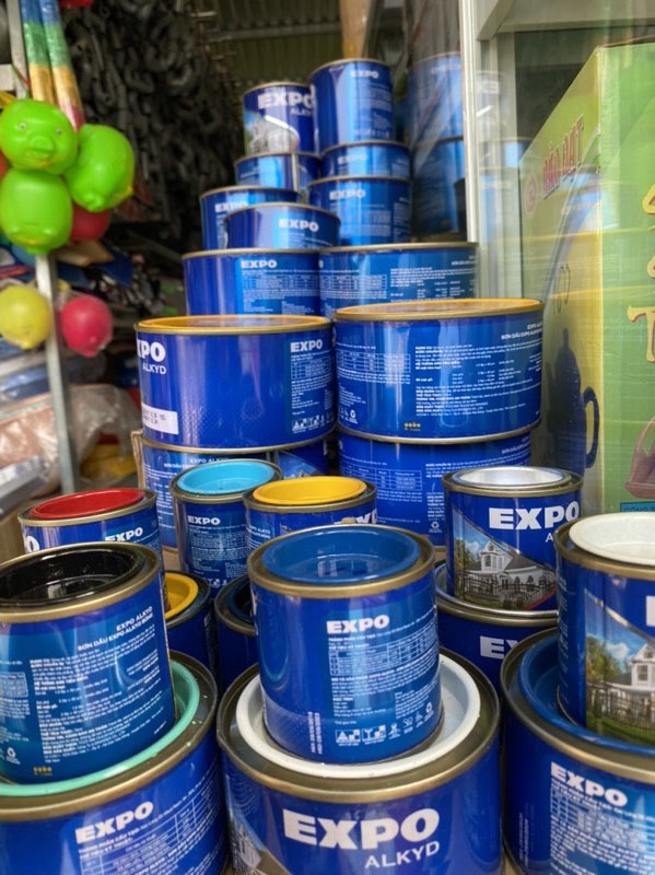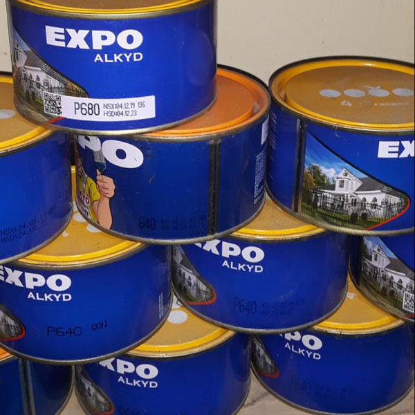 - Để pha loãng sơn có thể dùng dung môi xylene, toluene hoặc dầu hỏa. Sơn dầu alkyd EXPO có các lon 150ml, 375ml, 800ml, 3 lít và thùng 17.75 lít.