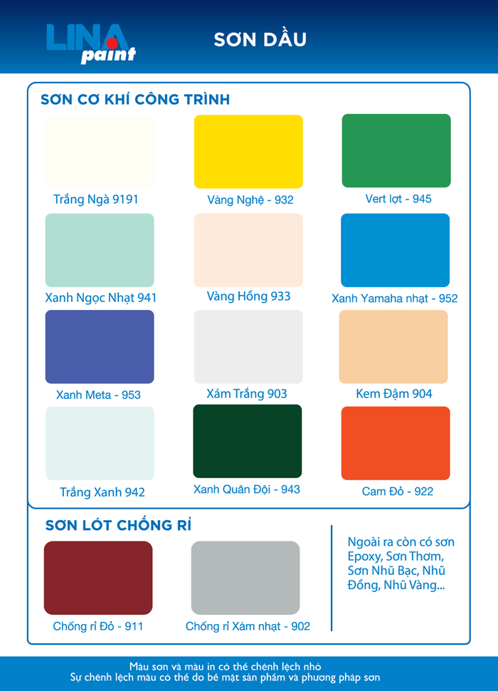 Sơn Lina là thương hiệu sơn rất được ưa chuộng và đánh giá cao về chất lượng sản phẩm, giá cả phải chăng. Hãng chuyên phân phối các dòng sơn chống rỉ, sơn dầu alkyd, sơn lót, sơn chịu mặn, sơn epoxy, sơn nước, sơn mạ kẽm với các sản phẩm đạt chứng nhận chất lượng cao, nhà máy sản xuất công nghệ tân tiến hiện đại, kiểm định chất lượng kĩ lưỡng, đóng hộp chắc chắn bảo quản nguyên vẹn chất lượng sản phẩm, bao bì đẹp bắt mắt. Lina là thương hiệu sơn rất đáng tin dùng.