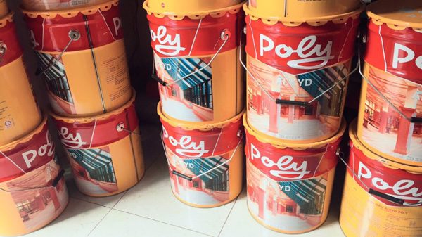 - Để pha loãng sơn có thể dùng dung môi xylene, toluene hoặc dầu hỏa. Sơn dầu alkyd Poly có các lon 375ml, 800ml, 3 lít và thùng 18 lít.