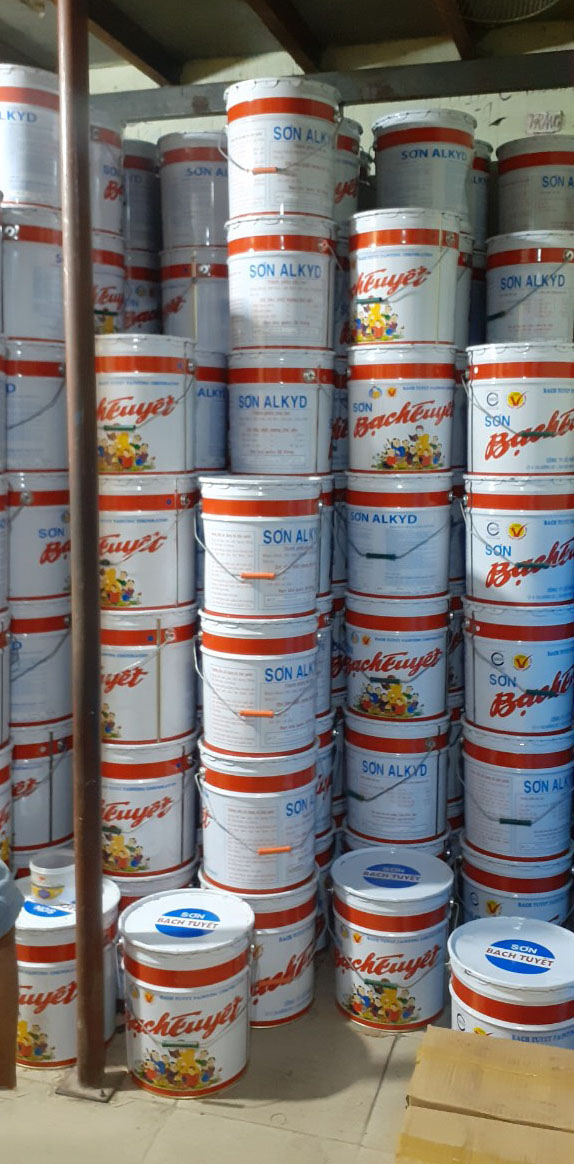 - Để pha loãng sơn có thể dùng dung môi xylene, toluene hoặc xăng. Sơn alkyd trắng mờ Bạch Tuyết có thùng18kg, các lon 0.5Kg, 1kg, 4kg.