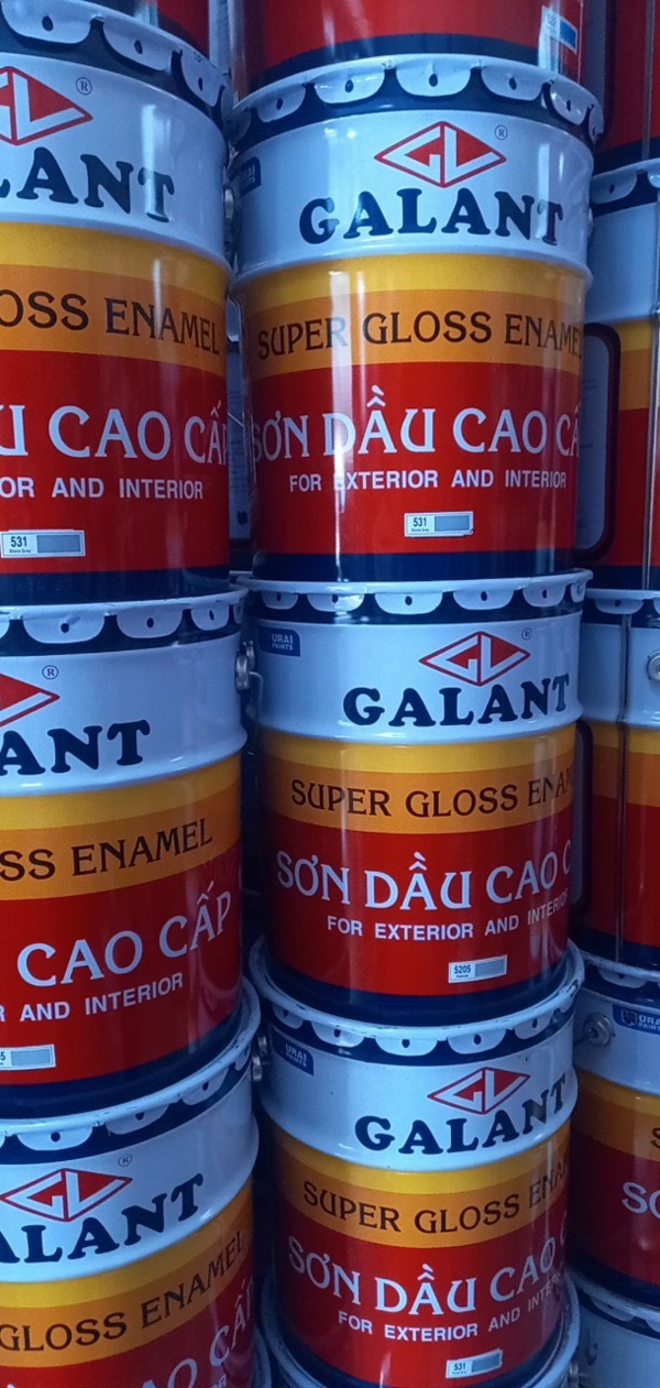- Sơn dầu Galant 3 lít màu 500, 505, 512, 550, F222 cho màng sơn đẹp, chống thấm nước, chống bám bụi, chống nấm mốc tốt, chống rỉ hoàn hảo. Sản xuất từ những nguyên liệu cao cấp nhập khẩu từ Châu Âu và các nước phát triển.