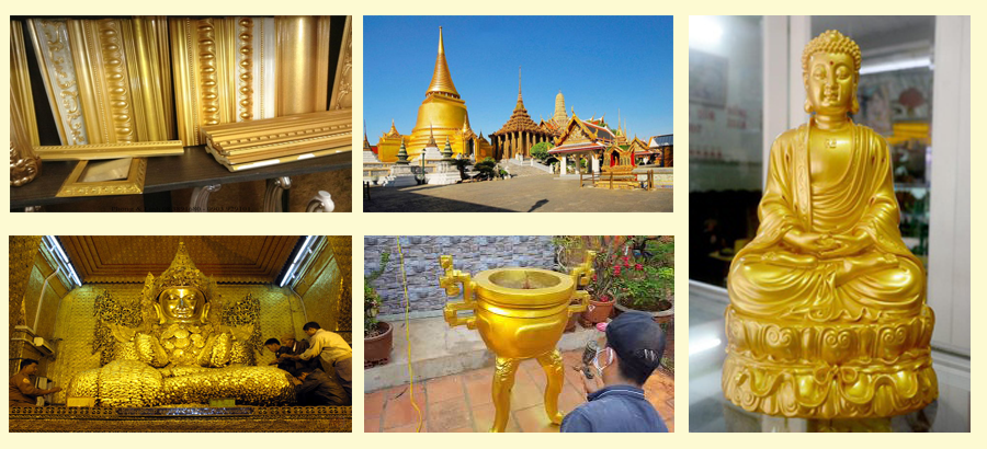 - Sơn nhũ vàng ATM được sử dụng rộng rãi trong các các công trình chùa chiền, tượng bằng xi măng, cột nhà...để trăng trí tăng vẻ đẹp, độ uy nghiêm và bề thế cho công trình. Dễ dàng sử dụng, chỉ cần khuấy đều sơn dùng cọ, con lăn để thi công.