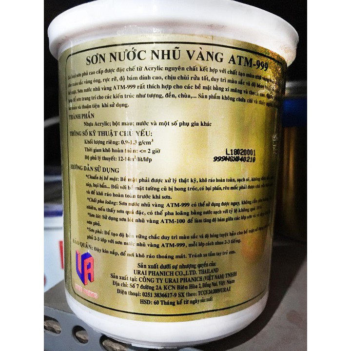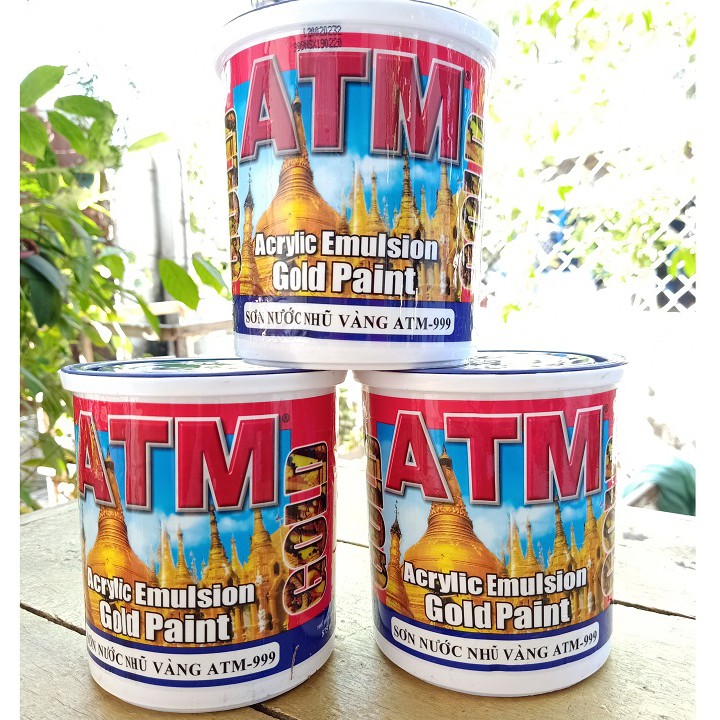 - Sơn nước Nhũ Vàng ATM 999 lon 875ml cho màng sơn đẹp, độ bền tuyệt hảo, chống thấm nước, chùi rửa được, chống rêu mốc. Sản xuất từ những nguyên liệu cao cấp nhập khẩu từ Châu Âu và các nước phát triển.